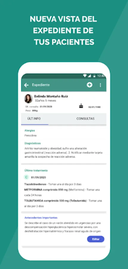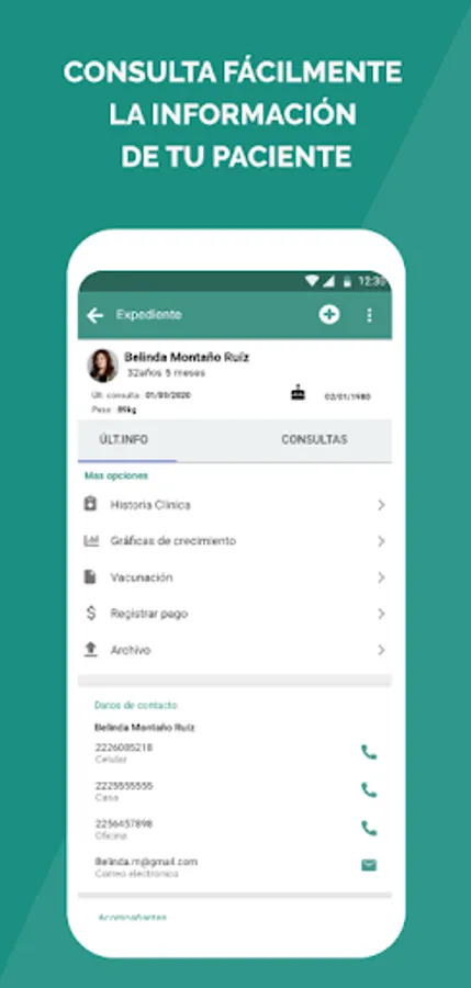 In addition, identify your patients when they call your cell phone and review their most relevant information (Allergies, Date of last consultation, Diagnosis, etc.)