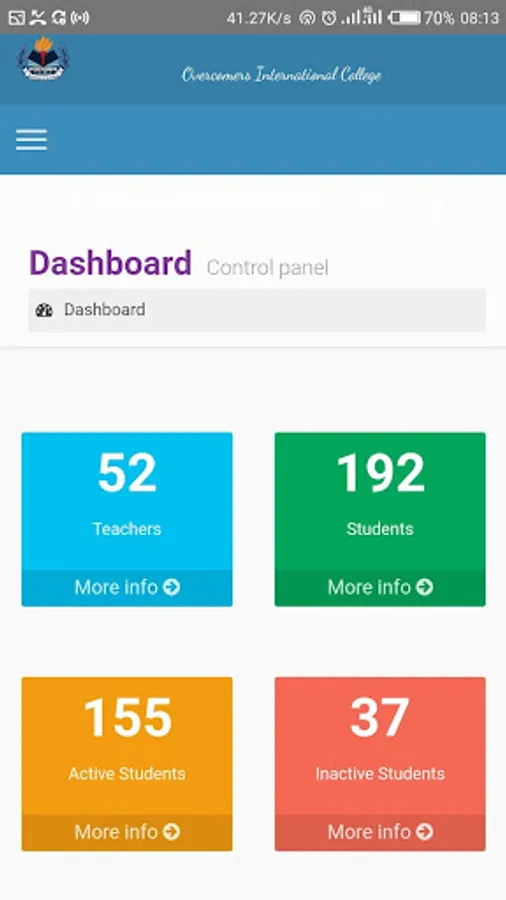 Overcomers College Mobile app provides the same functionality available on the web for mobile users. Teachers can login and update their scores, set online assignments and tests etc. parents and students/pupils can also login to carry out various activities.