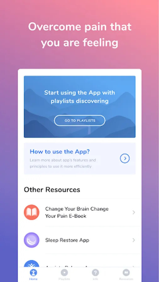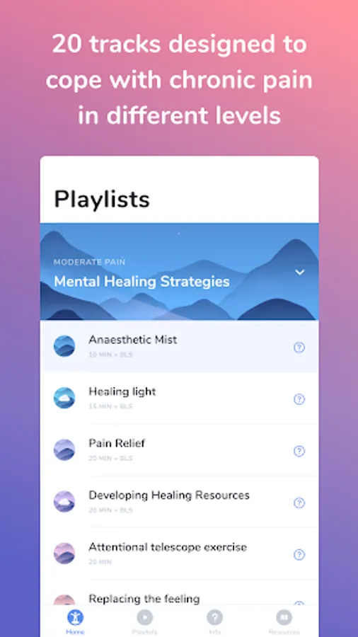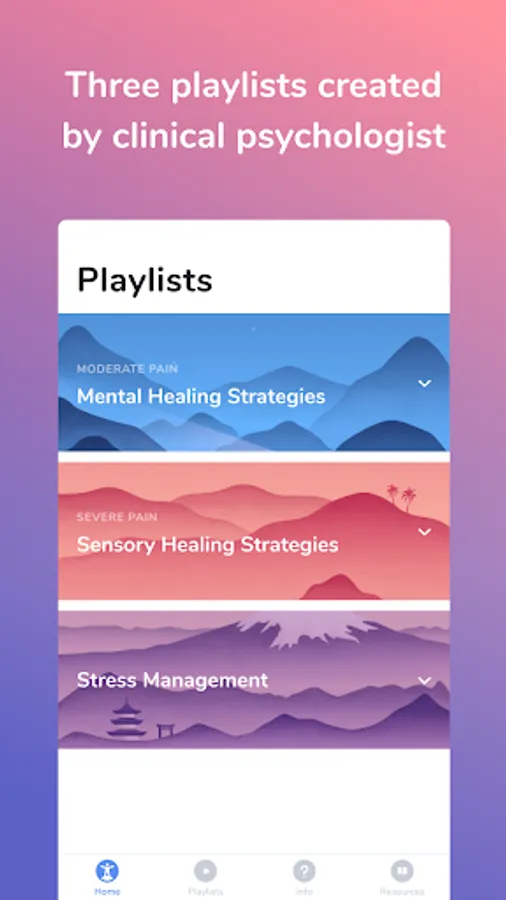 The application comprises 3 playlists for controlling pain and associated stress that can maintain pain.
