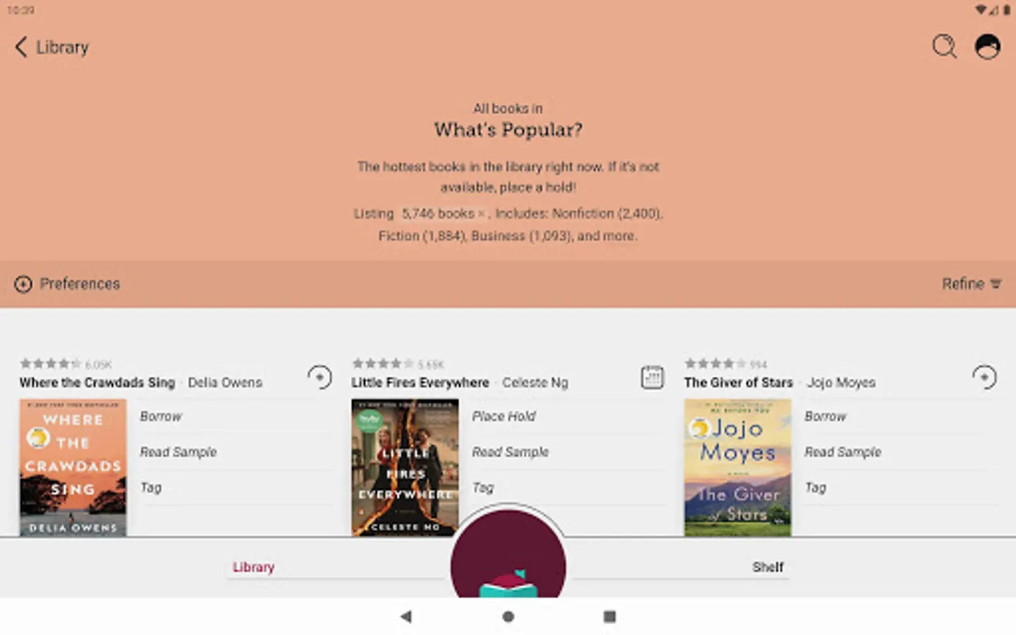 • Browse your library’s digital catalog of books — from classics to NYT best-sellers