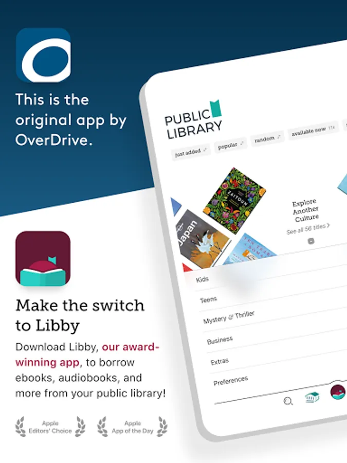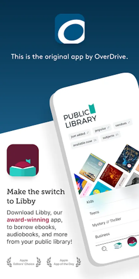 This is the original app by OverDrive. Be sure to download Libby, our new, award-winning app to borrow ebooks, audiobooks, and more from your library today!