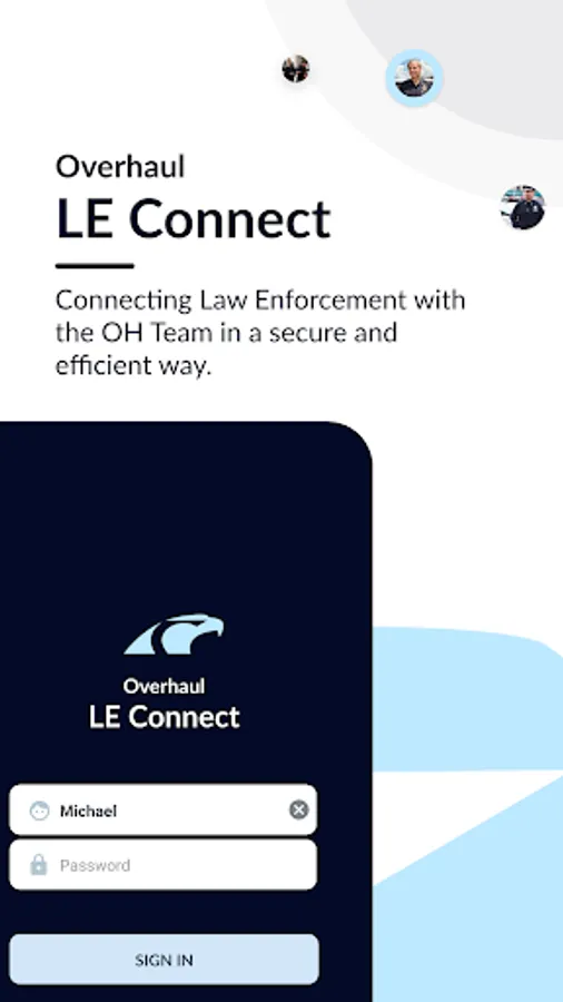 Overhaul LE Connect is the app that ensures secure, efficient, and integrated communications between Overhaul and the Law Enforcement community.