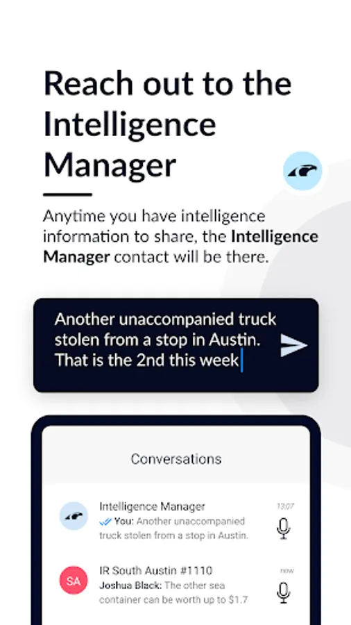 Message the Intelligence Manager to gain access to the Overhaul team, to bring suggestions on how to improve LE Connect, or to pass non-confidential information on cargo crime you feel may be relevant to the wider audience.