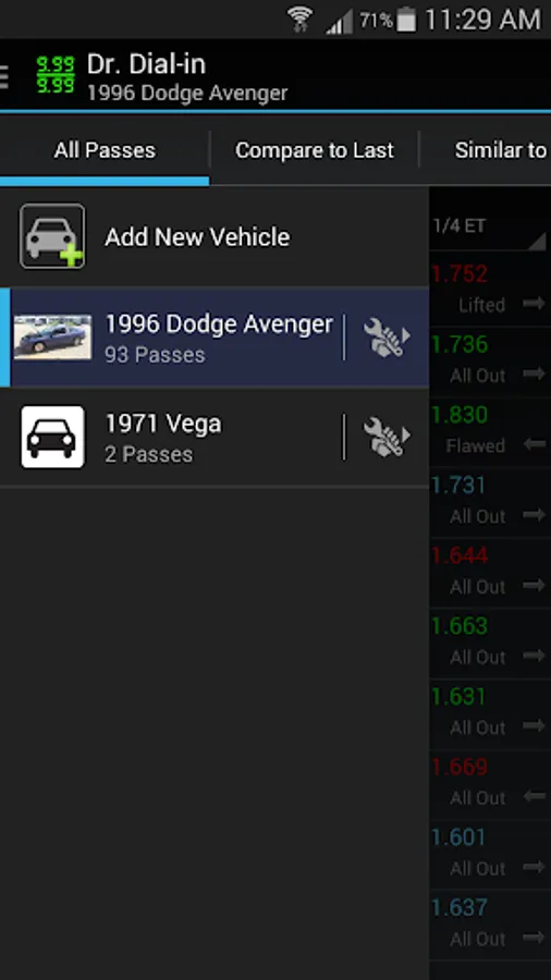 Not only are multiple vehicles supported, Dr. Dial-in makes switching between vehicles easier than any other app available. No longer will you need to navigate away from your current screen to change vehicles. Simply click the menu icon to the left of the current vehicle, select the vehicle of choice, and watch screen data update.