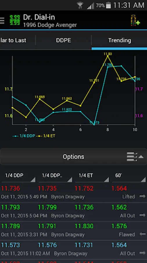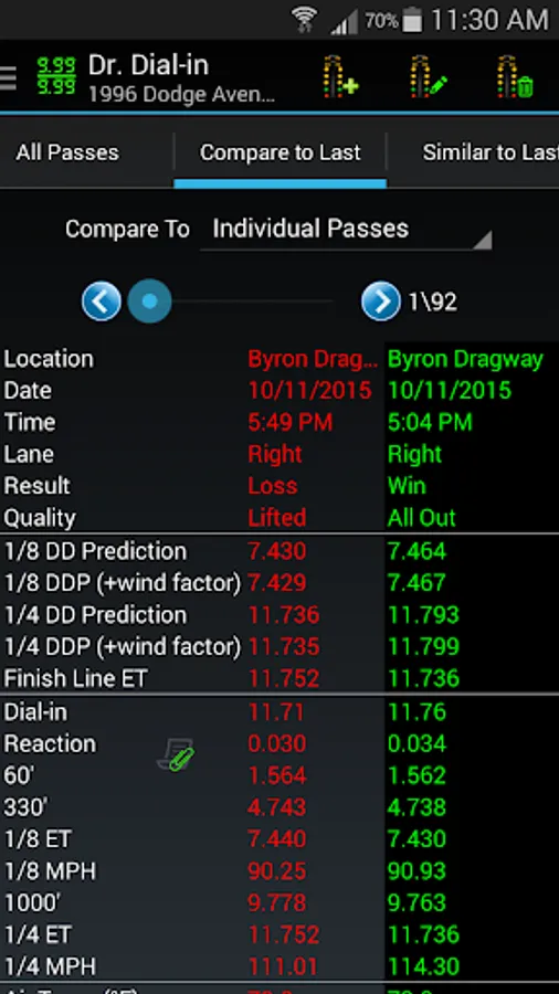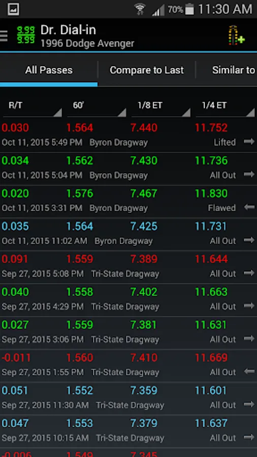Instead of thumbing through pages of log book entries looking for similar passes, let Dr. Dial-in pull them together for you. Similar passes to your last pass are always available from the main tabs, and just a long press away from any pass listed.