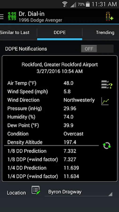 Made a weight change or engine modification to your vehicle that has reduced your ET? Dr. Dial-in will detect the difference in predictions and tune its self to the changes within two passes! That means by the time you make your time runs your predictions will be back on track. The engine will also tune predictions to reduce the risk of breakouts. Wind corrections are the most complex prediction formulas, but Dr. Dial-in offers predictions for that as well so you can make an informed dial-in.
