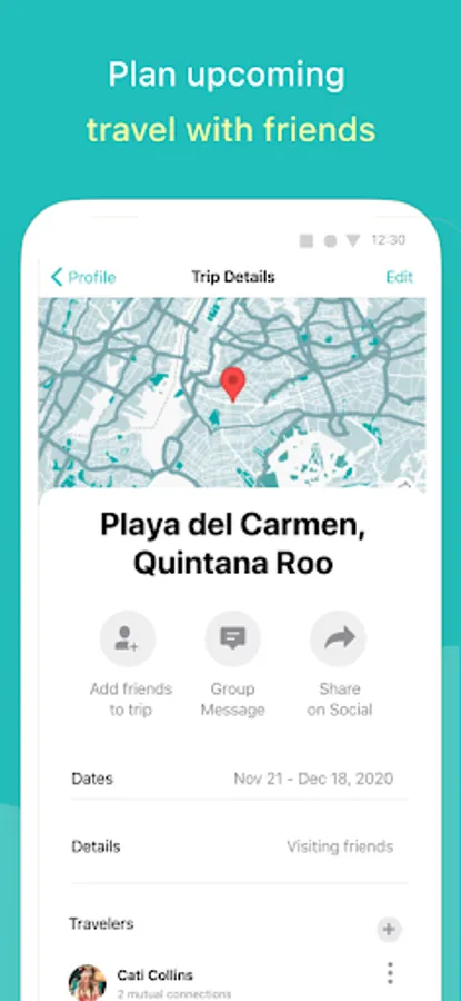 Never lose touch with your friends' travel plans and get alerted when your travel intersects with theirs. Keep your travel profile organized, get personalized recommendations from trusted friends, and never miss a chance to check off bucket-list destinations together.