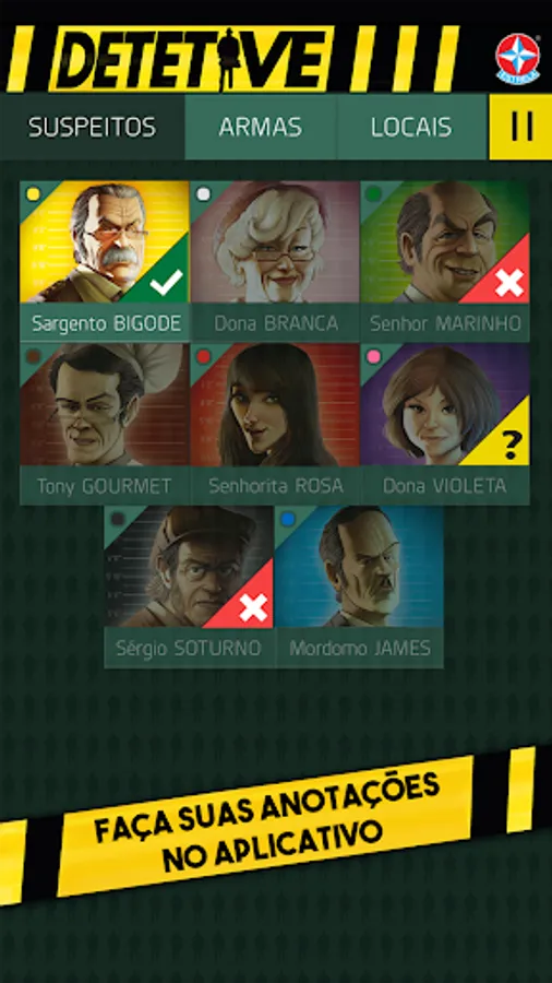 » To use this app you need to have the ‘DETECTIVE’ board game. Still don't have it? Know where to buy: www.estrela.com.br