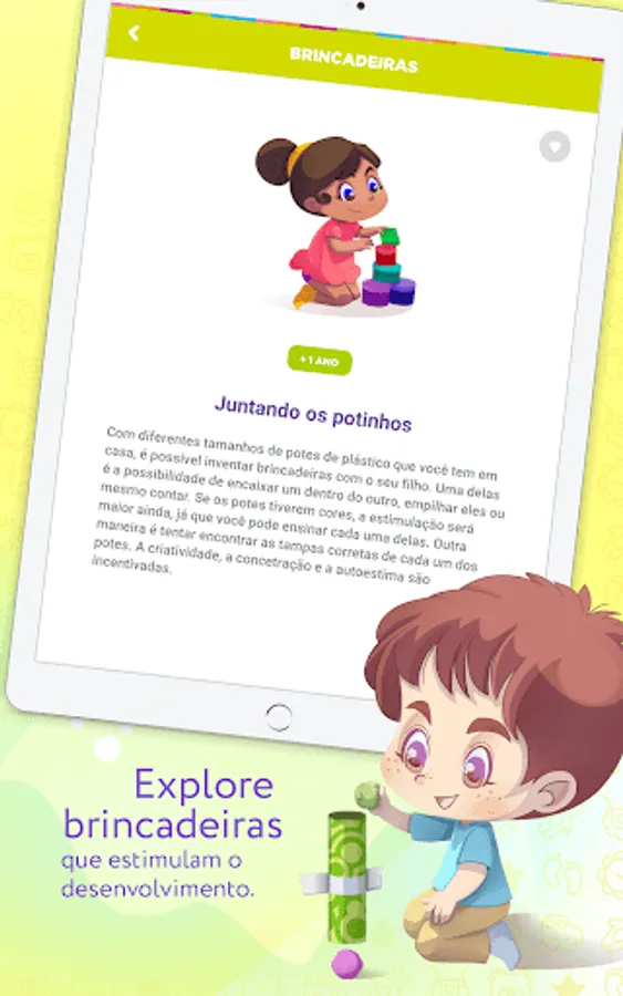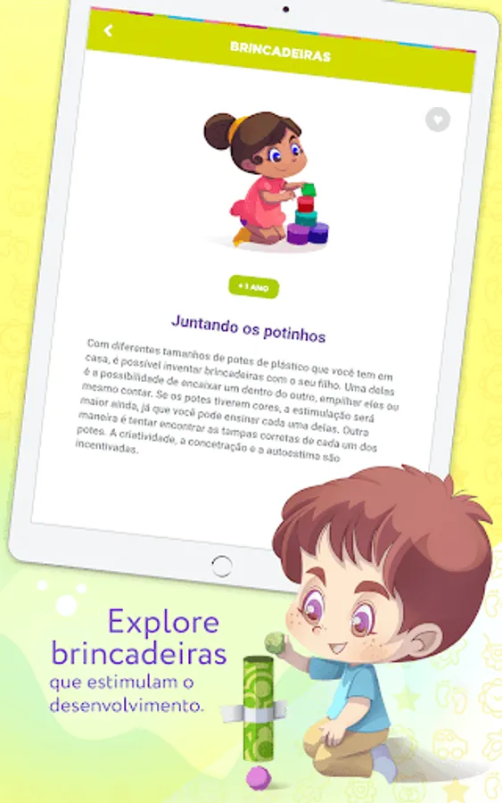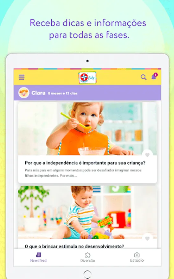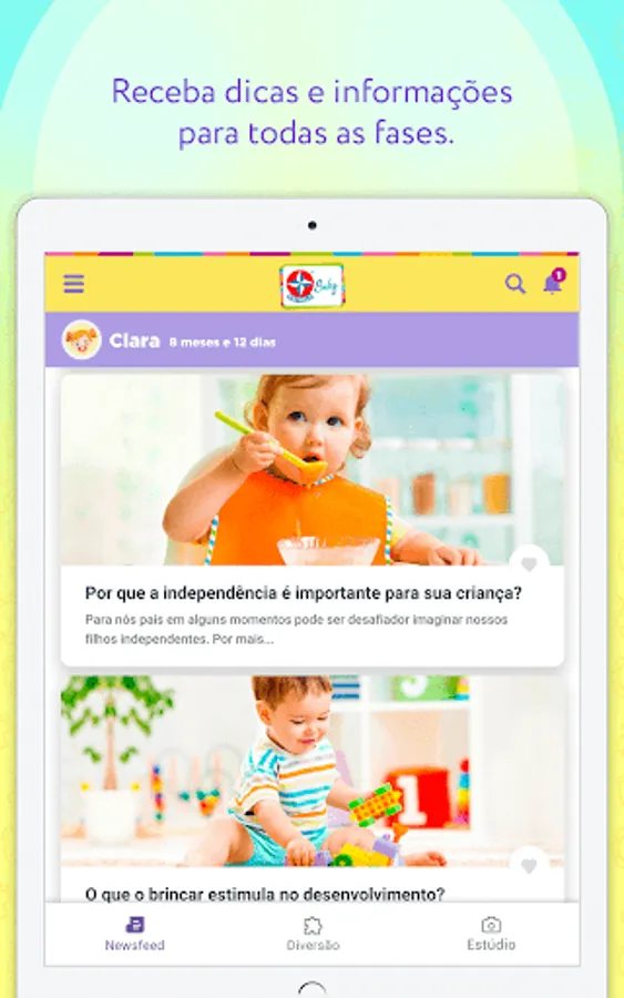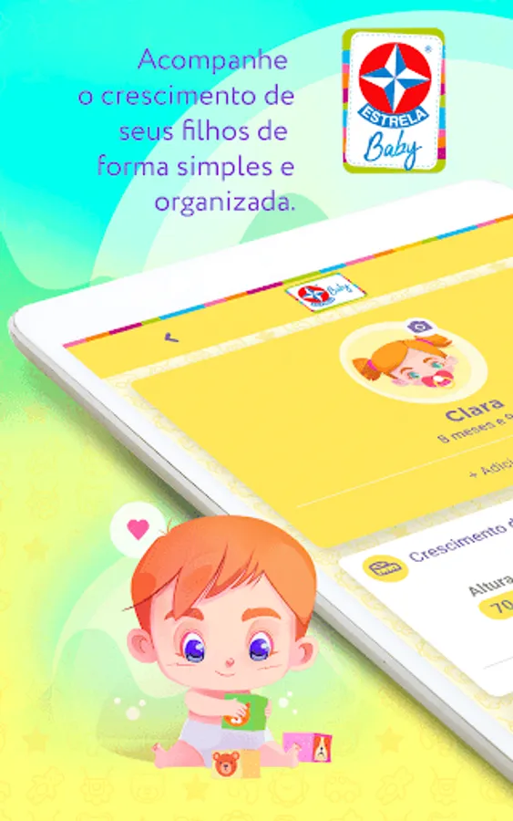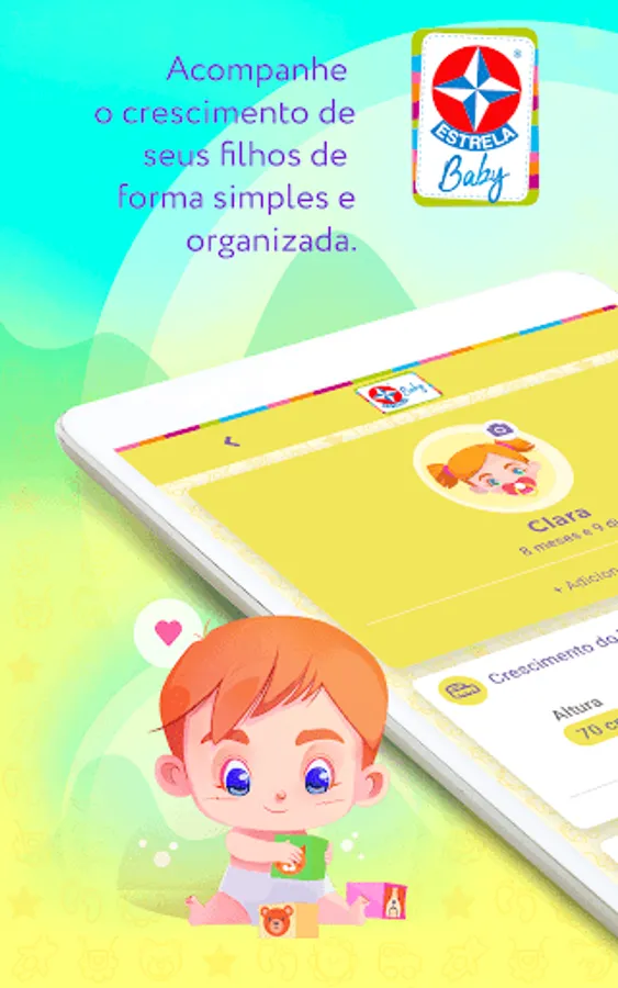 To help parents in the organization and evolution of their children, Estrela has developed the STAR BABY application, created to collaborate with families and keep them informed about the most important issues in the children's universe. We bring a series of educational toys, jokes and special albums, all designed with each phase of children in mind and in their development.