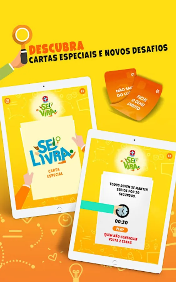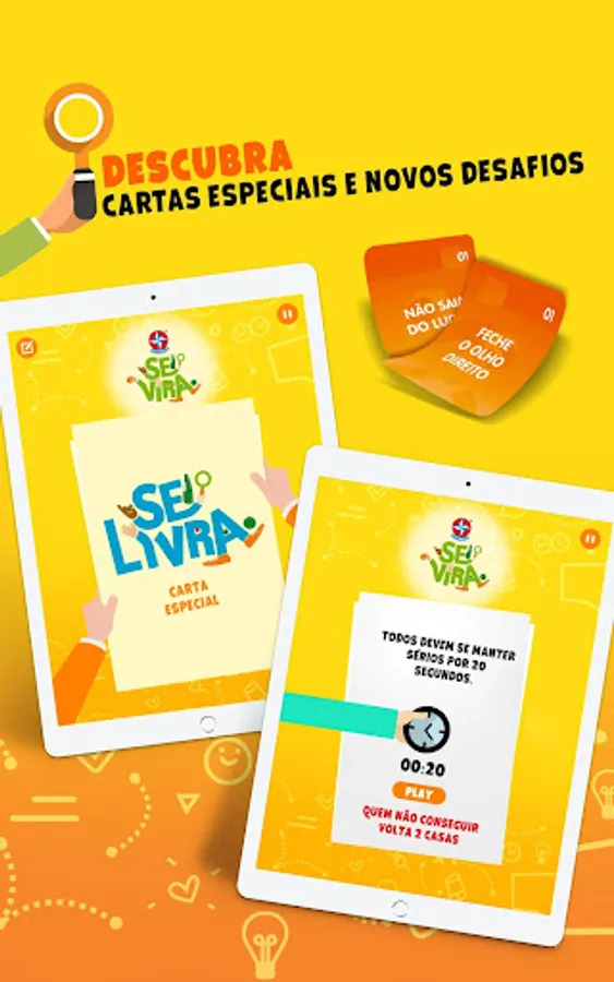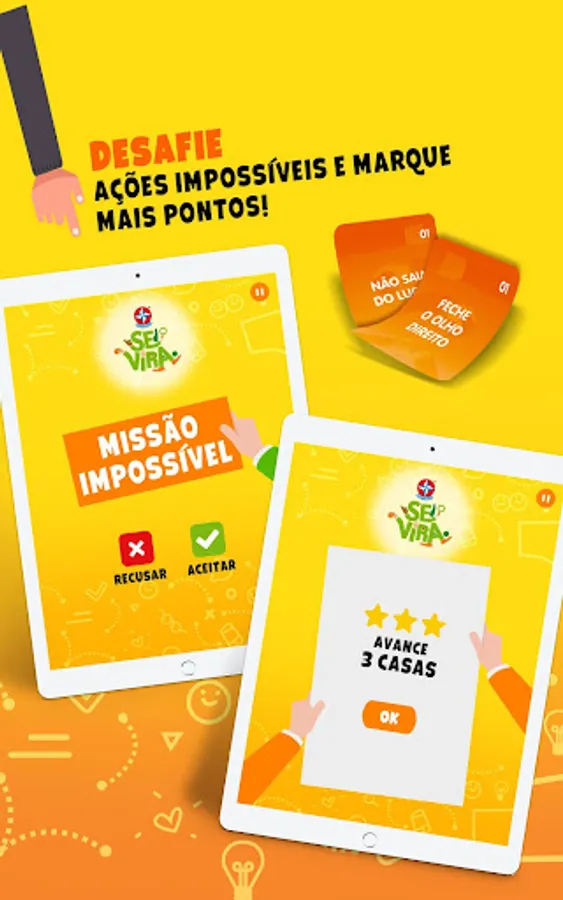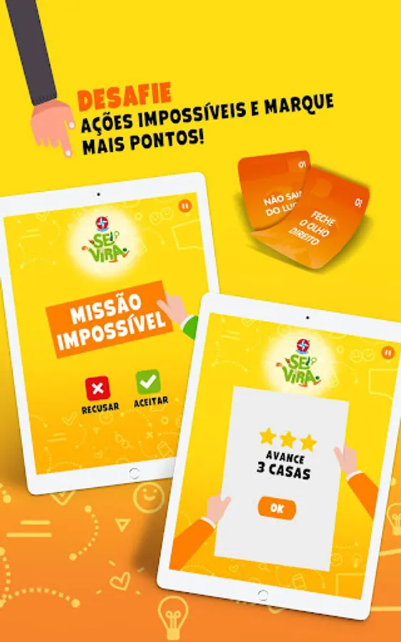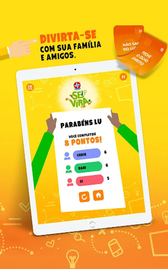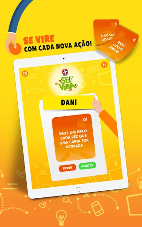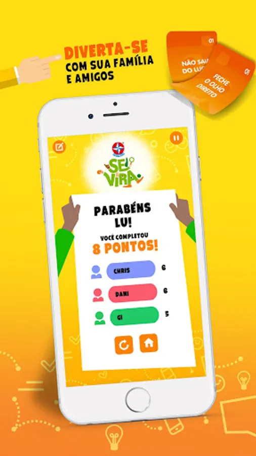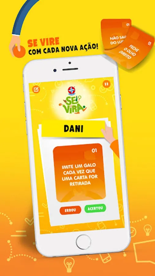 With the game SE VIRA you and your friends play with crazy and fun actions. Who can accumulate more actions and score 8 points first? For this, each player will need to squirm, pay tribute and show that he knows how to turn!