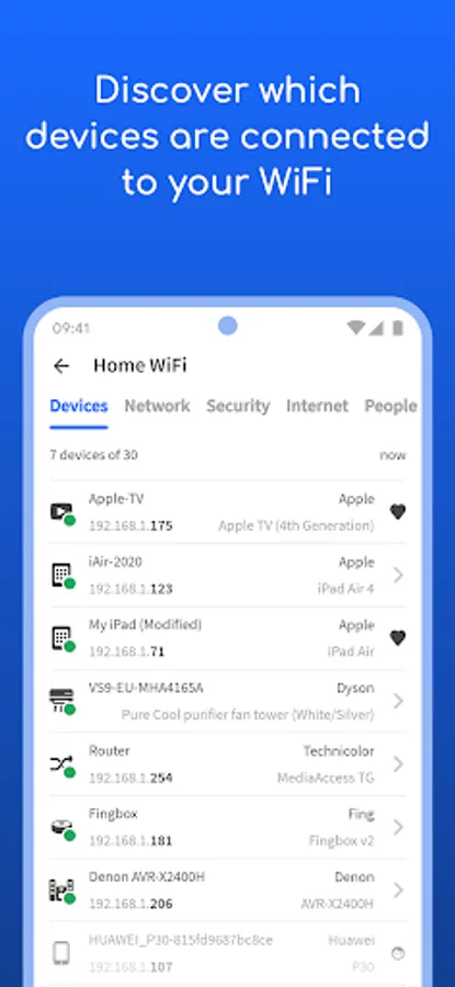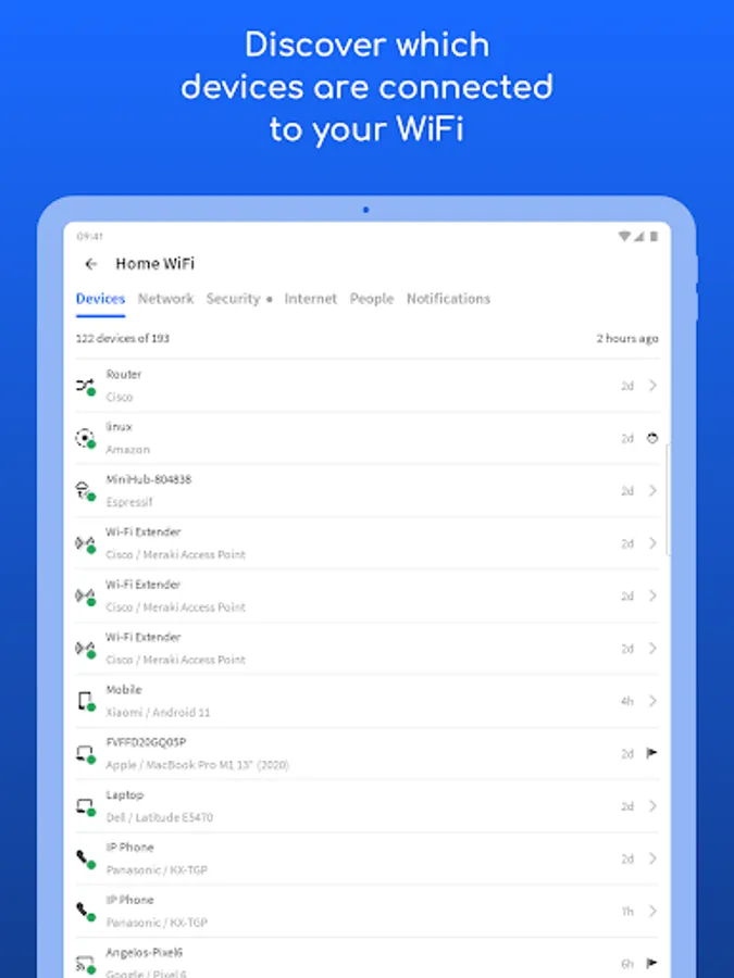 Fing is the #1 Network Scanner: discovers all the devices connected to your WiFi and identifies them, with our patented technology used also by router manufacturers and antivirus companies worldwide.