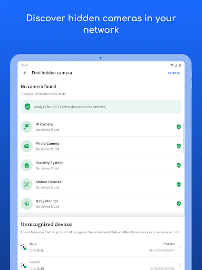 • Scan networks with Fing’s Wi-Fi & LAN network scanner and discover all devices connected to any network