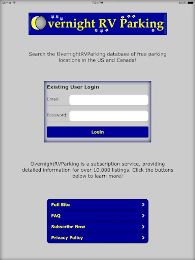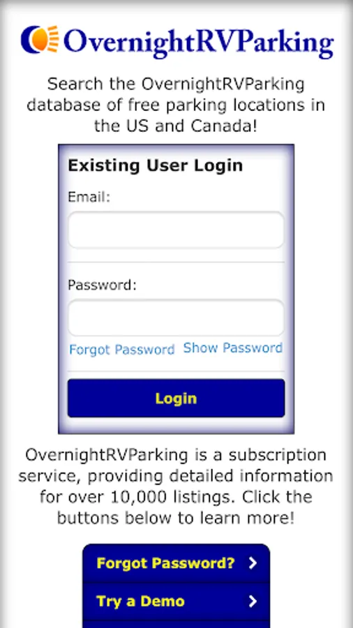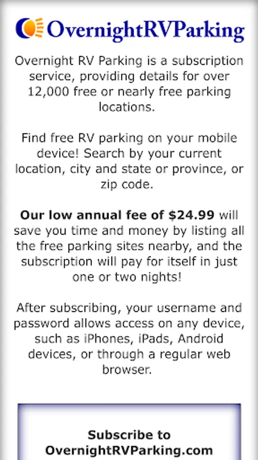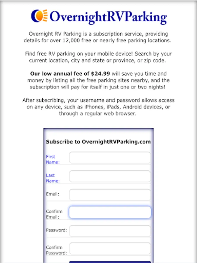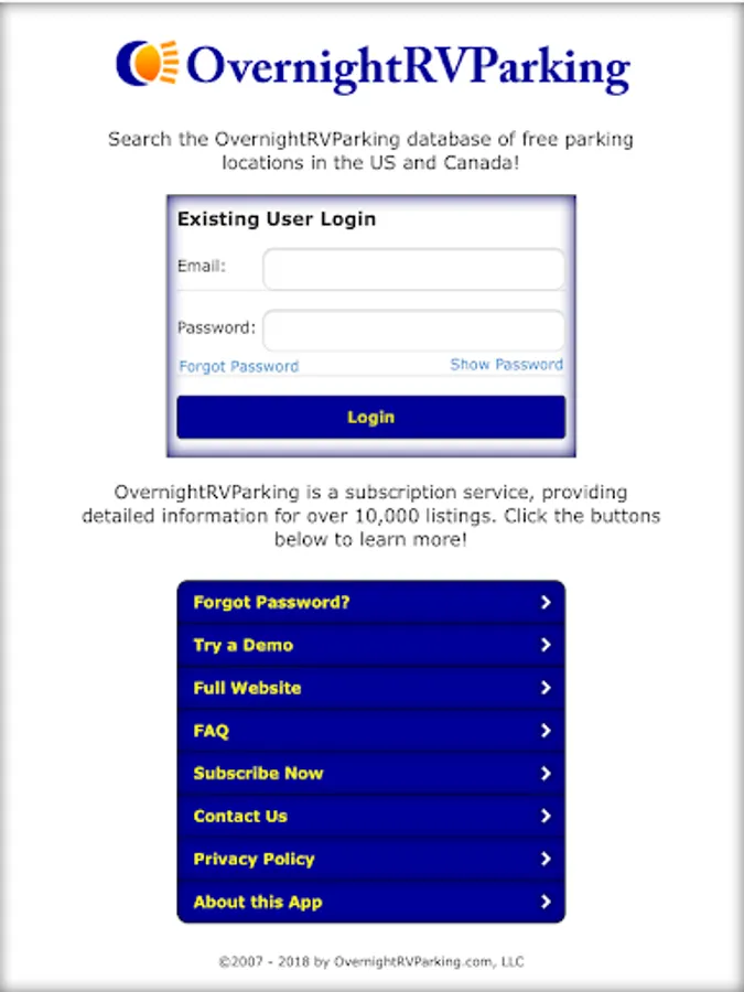 OvernightRVParking provides a database of FREE locations to park your RV for one night while you're traveling! This application will answer your Overnight RV Parking questions, including: