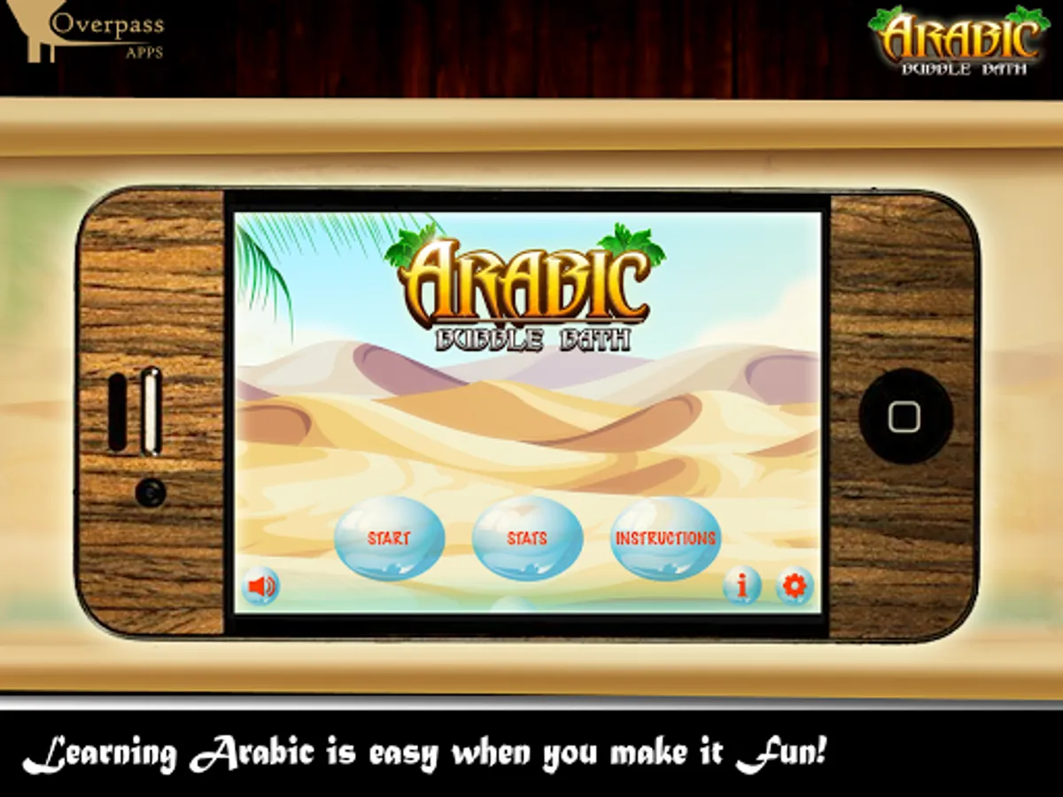 Arabic Bubble Bath features original artwork by Gesonrey Romero of Overpass Apps. It also features spoken Arabic performed by Pierre Abdel Karim. The app is produced by Eric Wroolie.