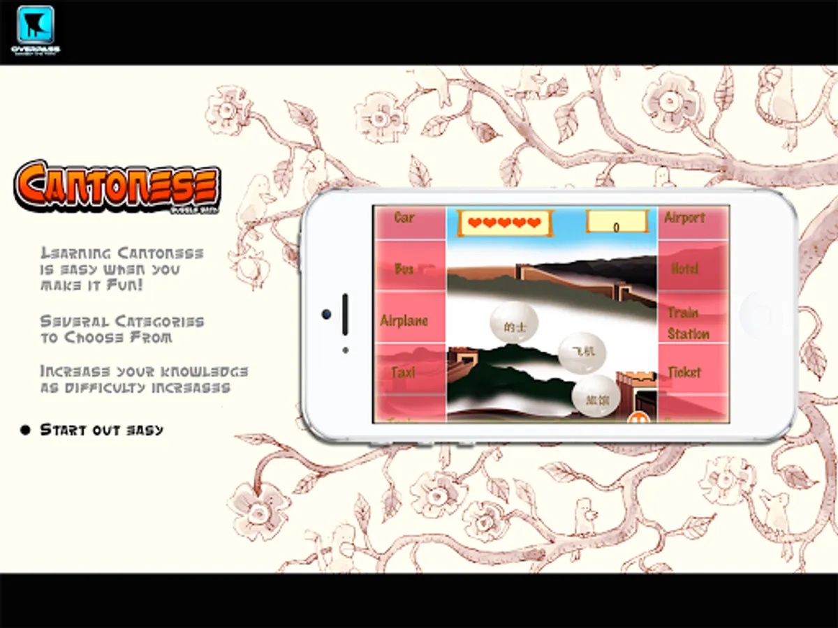 Learn Cantonese with a fun and engaging game. Whether you are traveling to Hong Kong or China Town -- or you just want to watch some Kung Fu movies -- it would be great to learn a little bit of Cantonese.