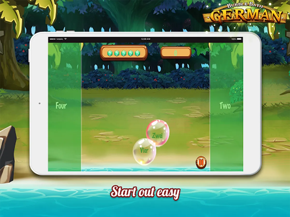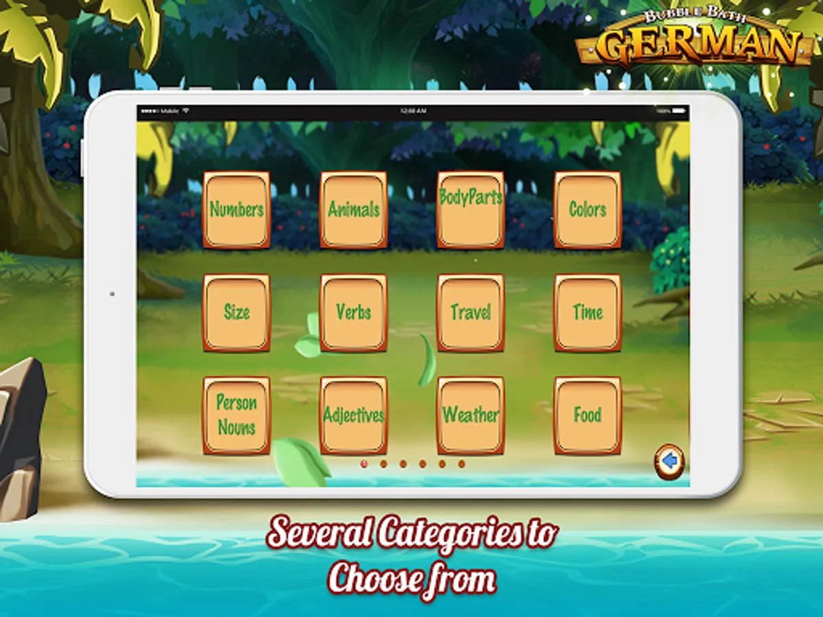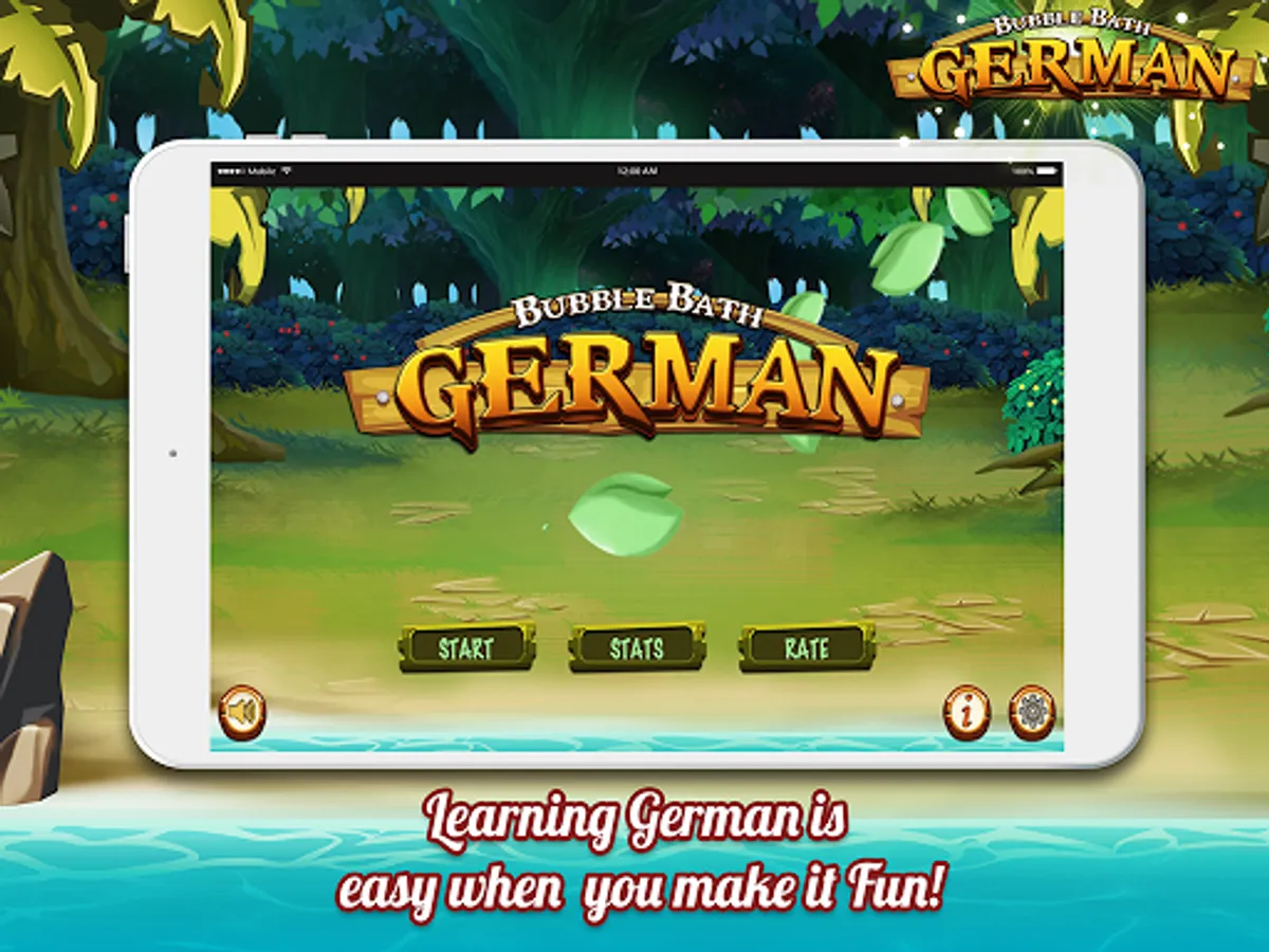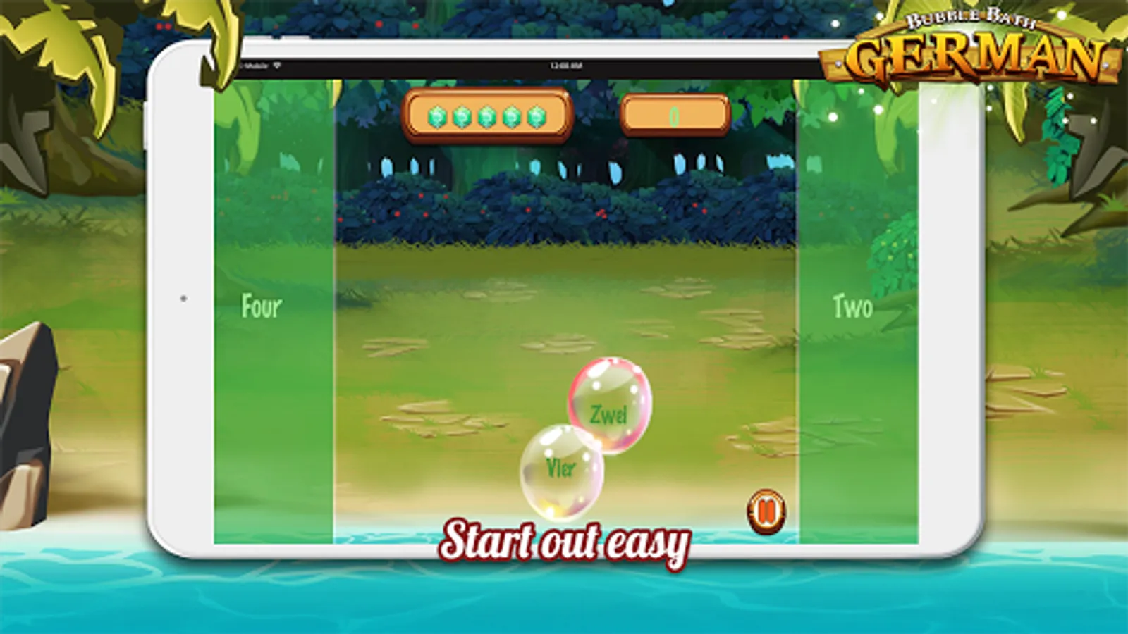 In this fun and engaging game, you practice listening to and reading German words and phrases. Each word floats in a bubble and you must tap on it and pop it by selecting the button with the translations.