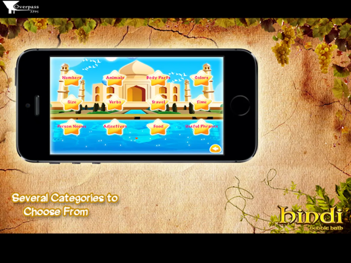 Learn Hindi easily with this fun and engaging game from Overpass Apps. Whether you are traveling to Mumbai, New Delhi, or Sri Bangalore -- or if you just want to properly watch some Bollywood films . . . you should learn some Hindi.