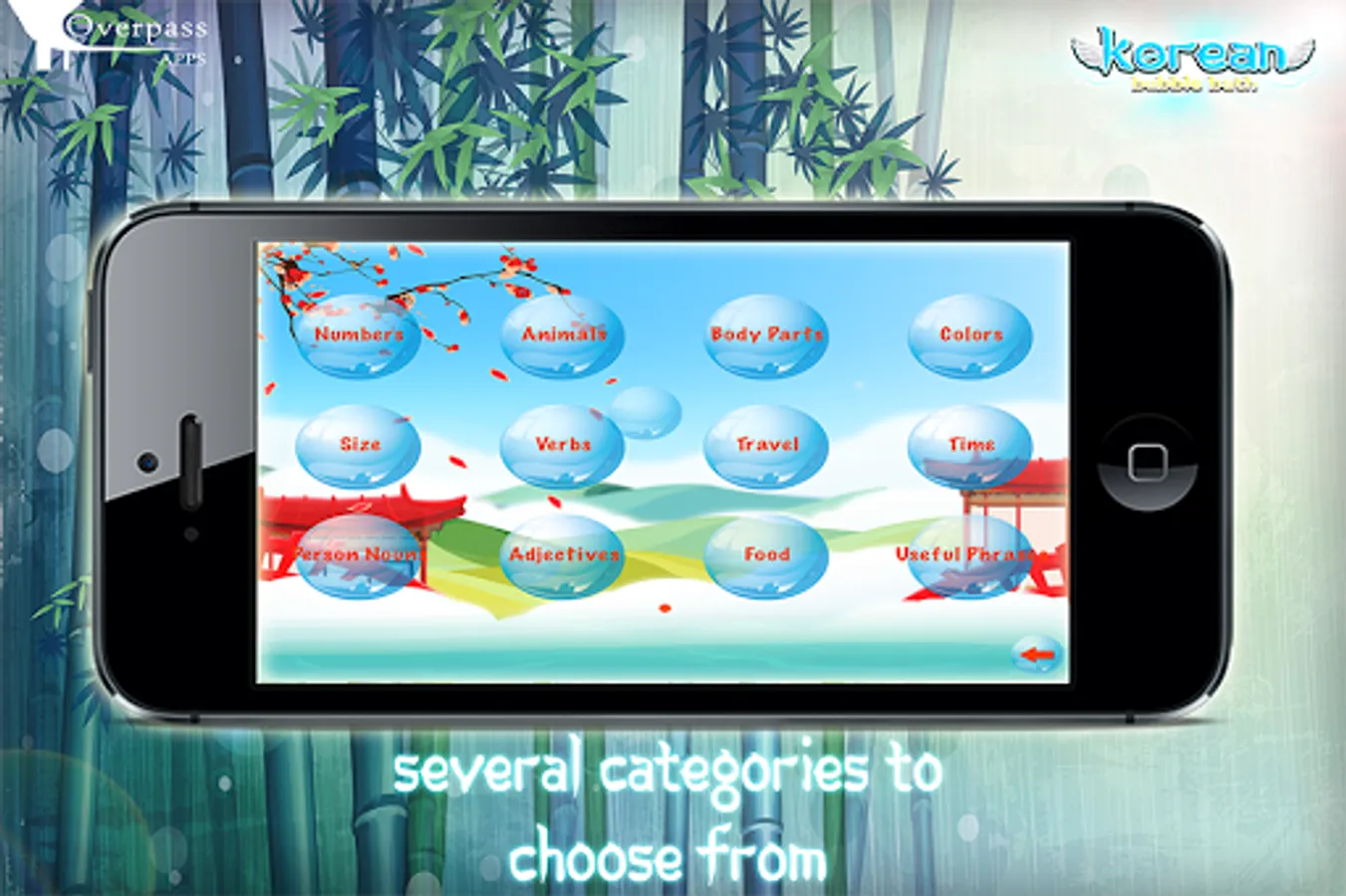 Pop the bubbles with Korean words and phrases and build your vocabulary. Listen to the words spoken. Pop them before they float away.