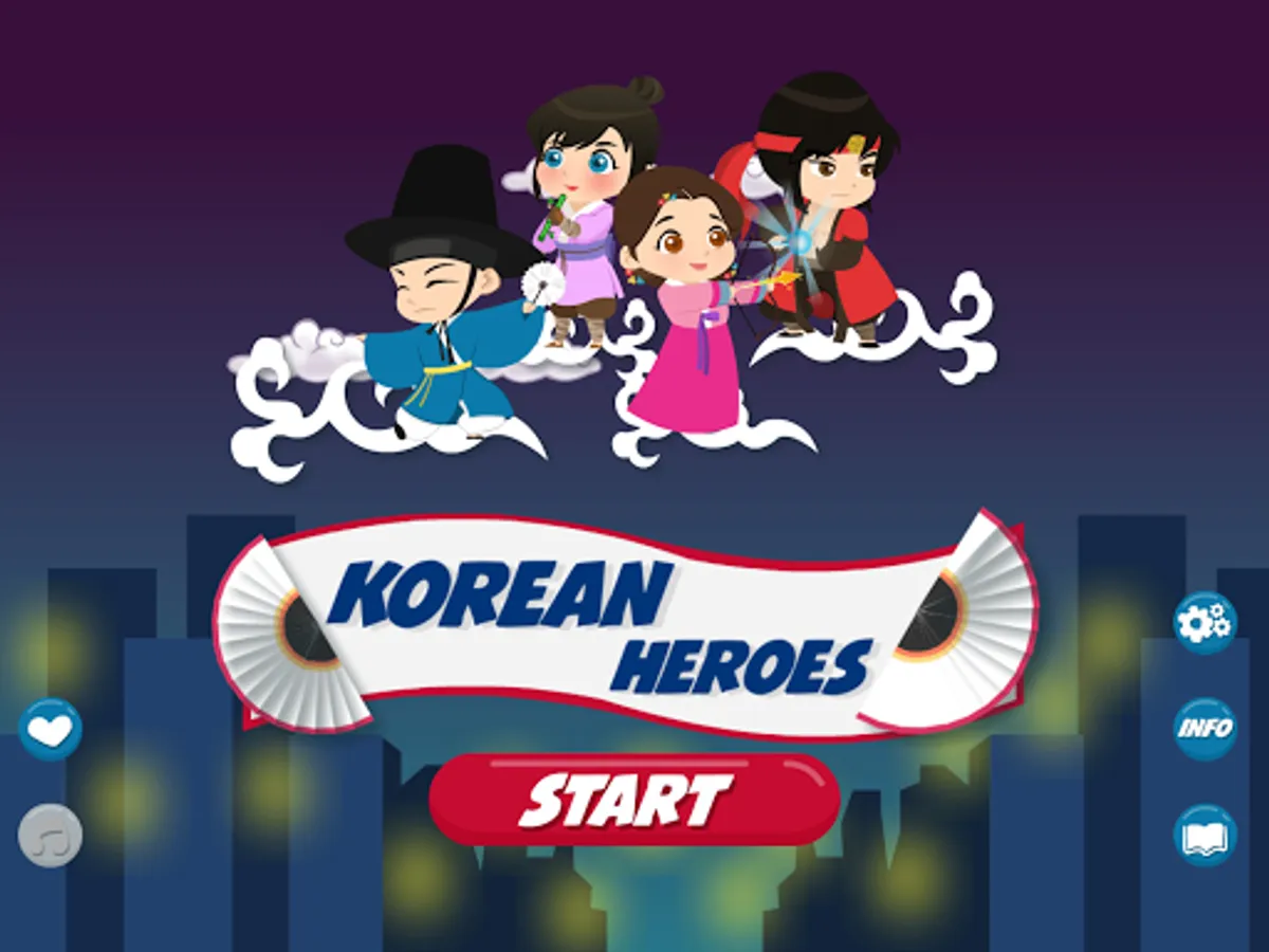 Korean Heroes is a game concept created by Sandee Chica of Overpass apps. It has original design by Sandee. It was coded by Joey Chica. Korean words and phrases were spoken by Jennifer Rhee and Eun Hae Oh. The game was produced by Eric Wroolie of Overpass Apps.