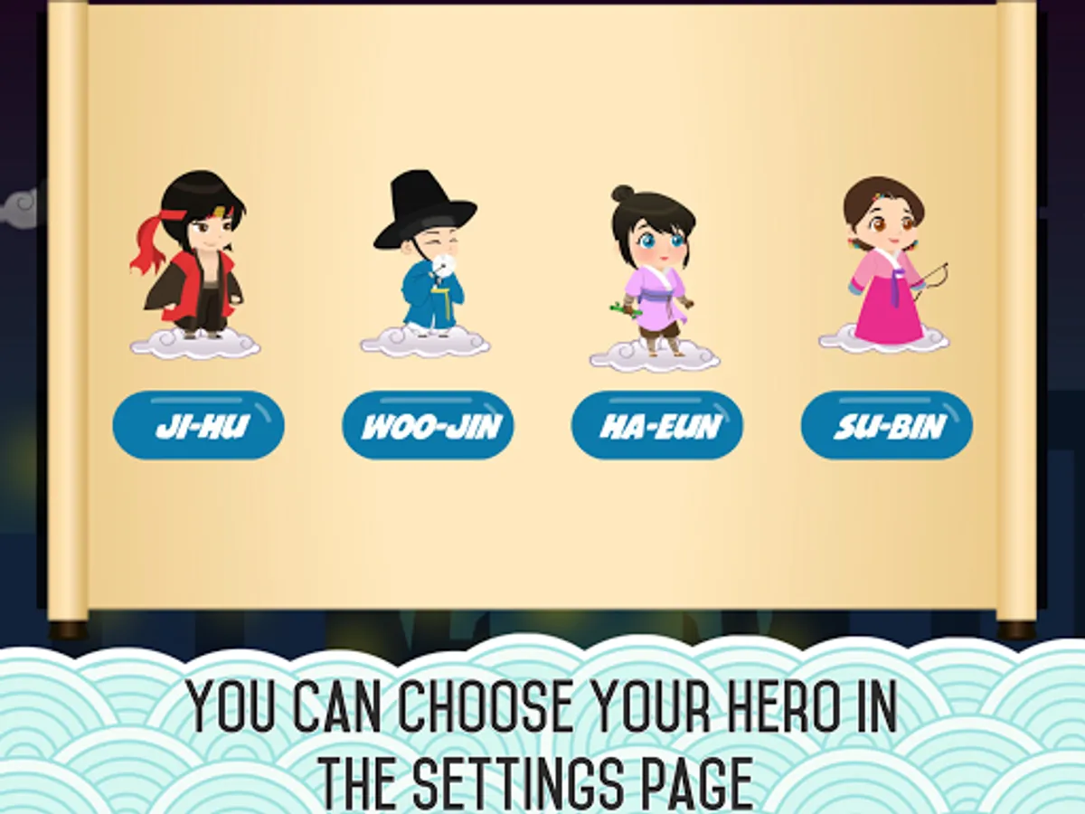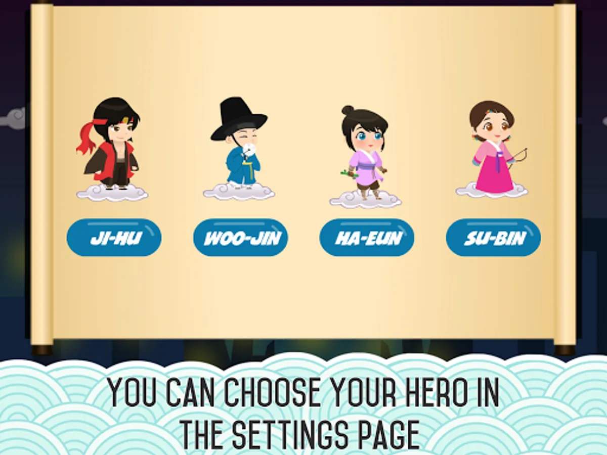 In this fun and exciting game, you can select which hero you want to use to stop Gumiho. Each hero will attack and (hopefully) destroy the fireballs by quickly translating the words and phrases she sends to you.