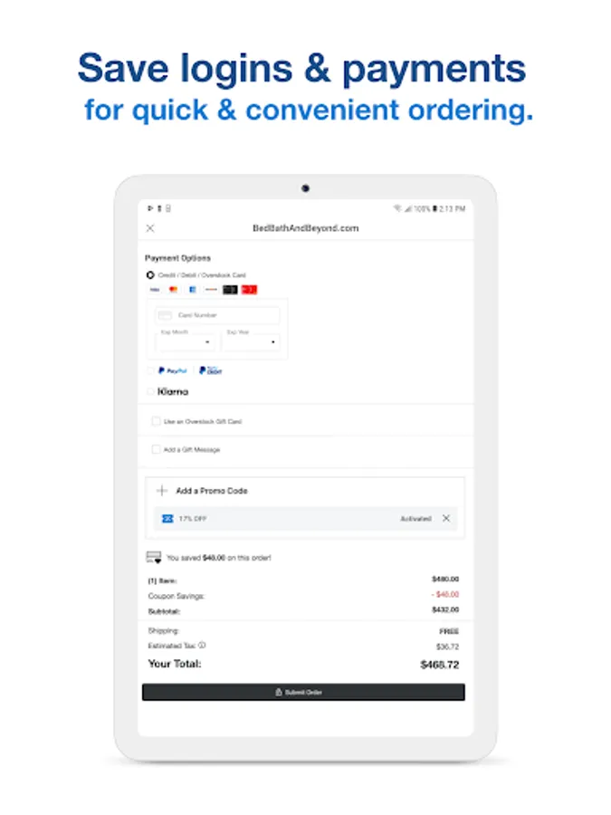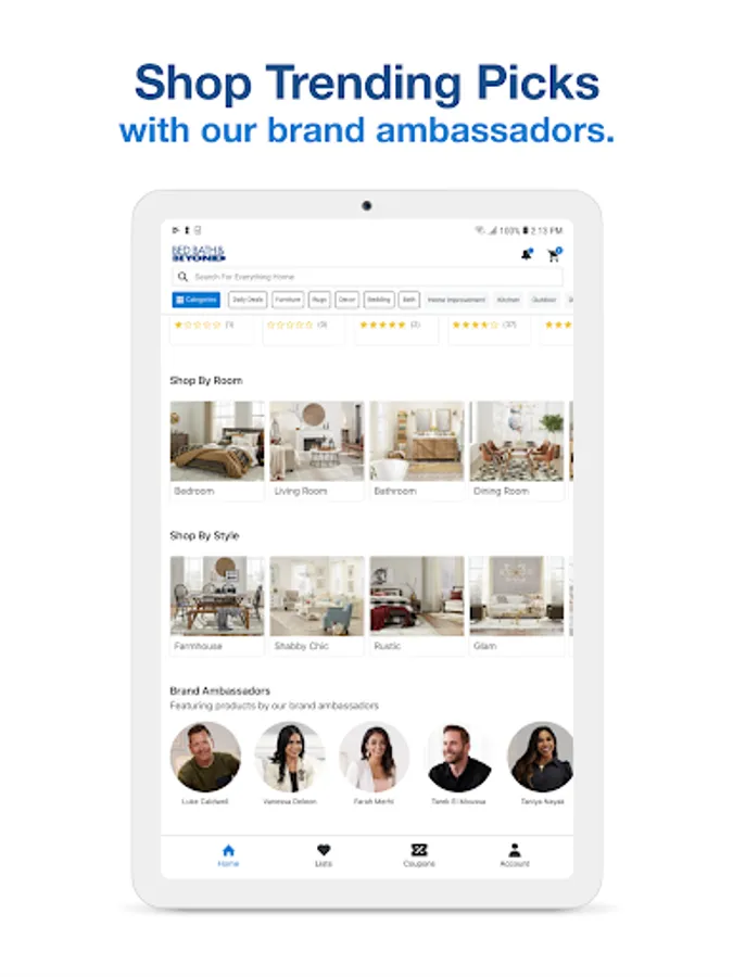 Search, browse and shop thousands of home goods right from the palm of your hand. Whether you are furnishing your entire home or just searching for a great deal or a gift Bed Bath & Beyond is the place to make shopping simple and affordable.