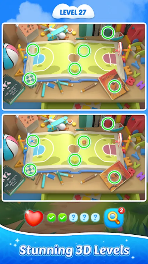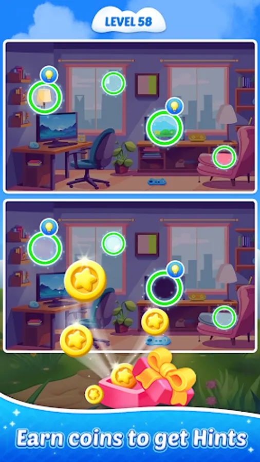 - Use hints for clues if you can not spot the differences