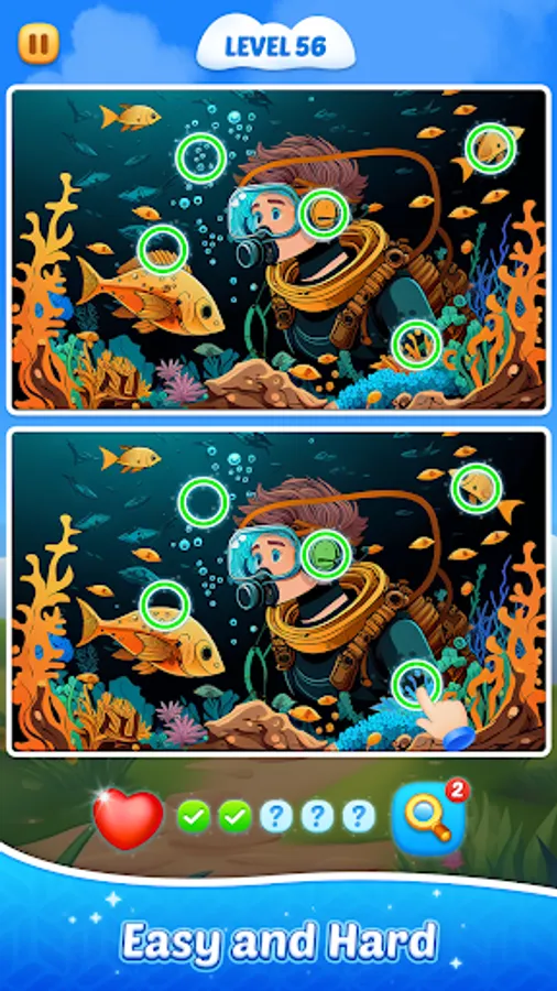 Get ready for a brain-teasing challenge that's both entertaining and rewarding! Our attention-boosting Find the five Differences game is the perfect way to improve your concentration and problem-solving skills while having fun. With a mix of easy and hard levels, you'll be constantly challenged and engaged.