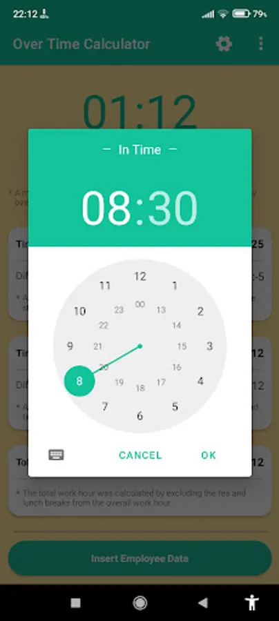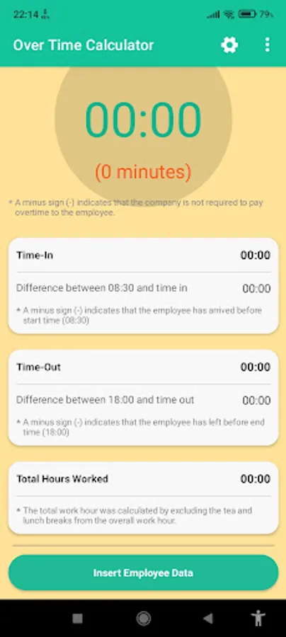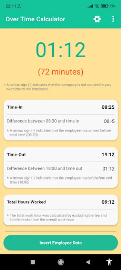 This simple application will make it easy to find out how much time a person works beyond the regular working hours. The operation of this application is as follows.