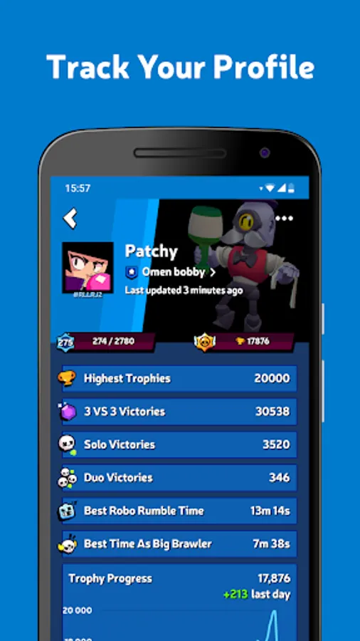 - See your personal stats including trophies, win/loss records, etc.