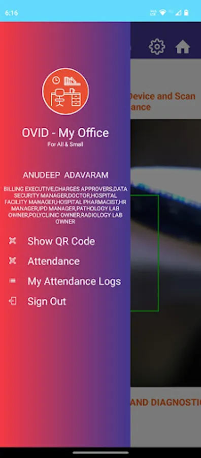OVID My Office is a unique QR code based Attendance Management System Software. It is designed for all businesses small and medium or large. It helps you get rid of the buggy and high maintenance Biometric Machines and Card readers. It is highly secure and has multi factor authentication. Each user is configured with their personal mobile device and also the location of both the devices is captured for all audit purposes. It will help us get rid of e-waste generated because of these extra attendance machines at the offices worldwide. You can configure multiple machines at the office for QR code display. Staff can then scan QR code on any of these Mobiles from their personal mobiles, configured by the HR against their Employee No. The user also gets to see his attendance logs of the past 1 month by each date. Employees also can work peacefully without worrying if their attendance is recorded properly or not. The QR code is entirely different on different mobile devices and it also changes every few seconds.