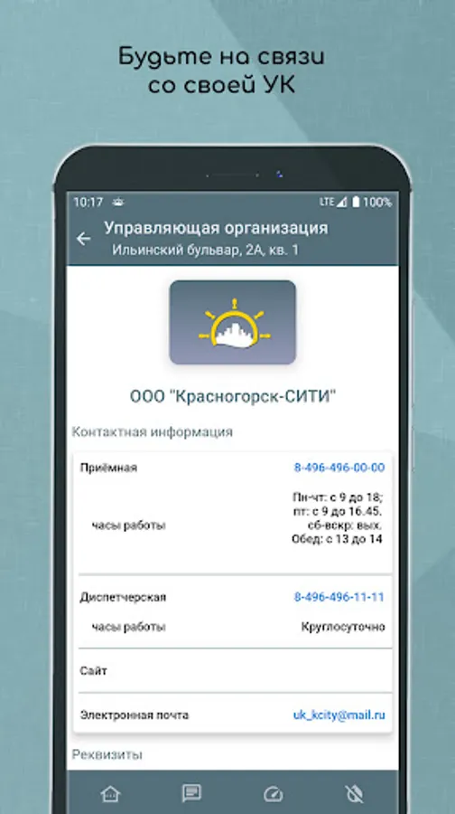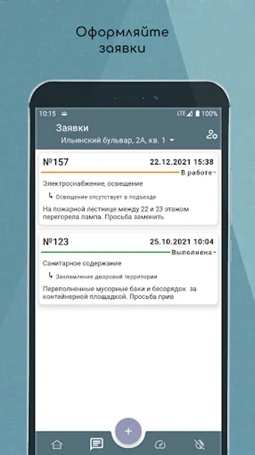 In this mobile application, the management company provides the residents of their homes with various convenient services: