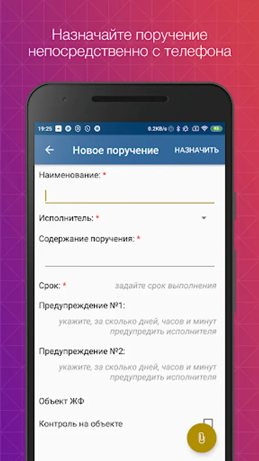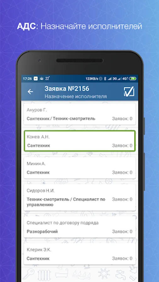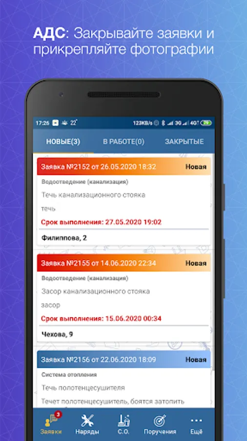 • Interaction with the dispatching service for the performance of work by foremen and workers. Allows you to fix the time of receipt of the application by foremen and workers, fix the place and time of arrival at the facility, make phone calls to applicants from the application, make photographic recording of work performed with automatic registration of all actions in the main information system. Compatible with ip-telephony of the main information system or third-party systems.
