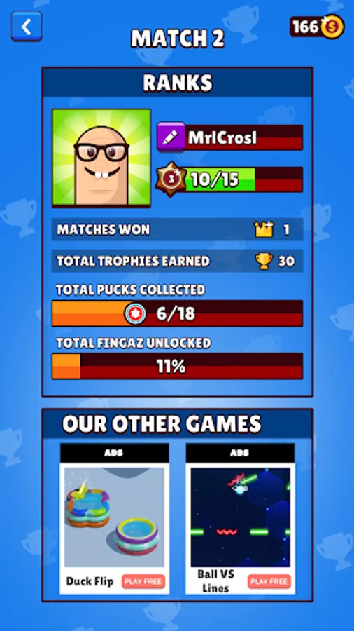 Win matches to gain trophies that rank you up! rank up gives you bonuses and unlocks new Fingaz you can get, can you get them all??