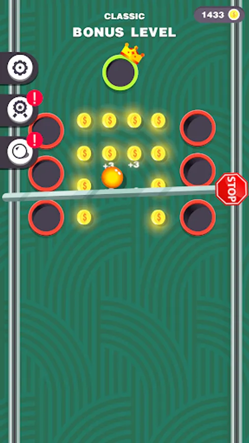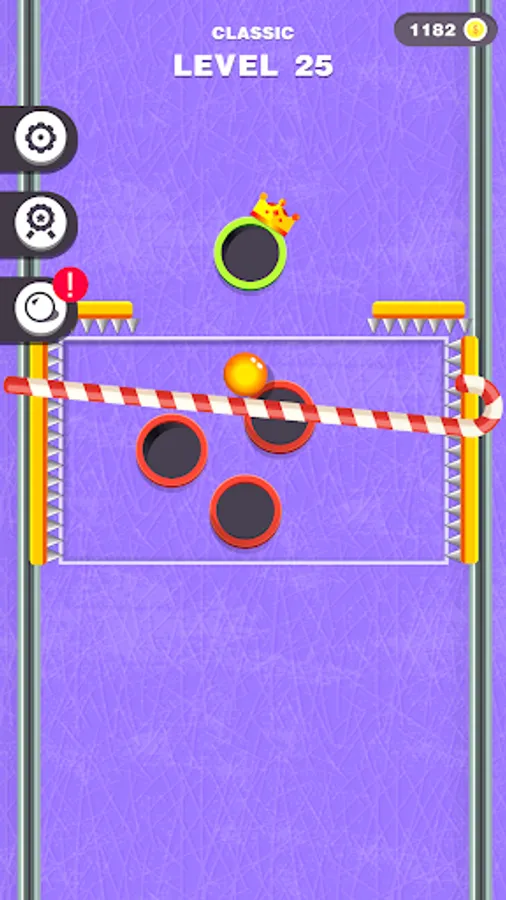 Control the Bar with one finger and navigate the ball into the Crown holes, be careful not to enter the ball into the red holes or to hit the spikes!