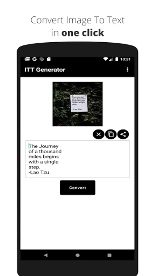 ITT - IMAGE TO TEXT GENERATOR is an App tools using Machine Learning Kit which helps you to convert your Important Documents Images , File Images ETC to text in one click.