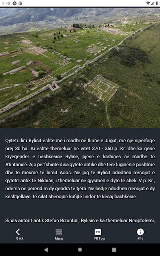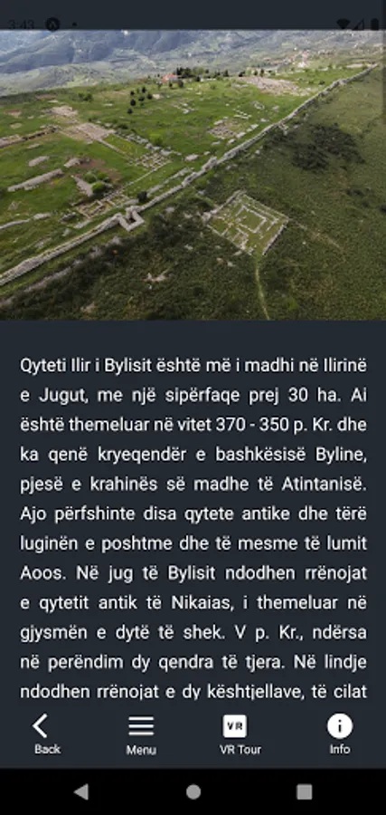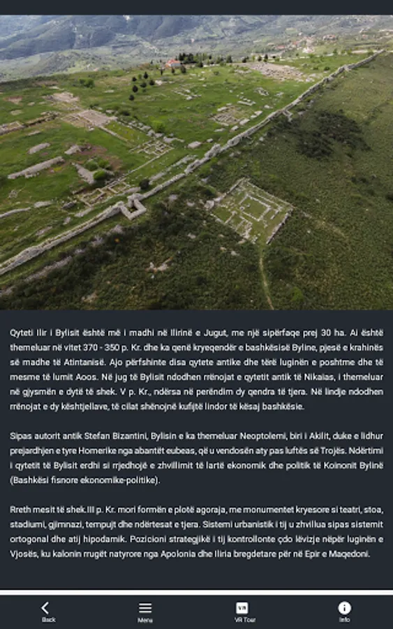 The Illyrian city of Bylis is the largest in southern Illyria, with an area of 30 ha. It was founded in the years 370 – 350 b.C and has been the capital of the Byline community, part of the great province of Atintania. It included several ancient cities and the entire lower and middle Aoos River valley. To the south of Bylis are the ruins of the ancient city of Nicaea, founded in the second half of the century. V b.C and in the west two other centers. To the east are the ruins of two castles, which mark the eastern borders of this community.According to the ancient author Stefan Byzantini, Bylis was founded by Neoptolemus, son of Achilles, linking their Homeric descent to the Euboean Abantes, who settled there after the Trojan War.