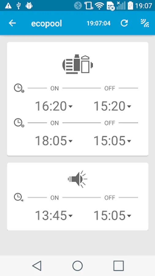 - Check the BLE-pool clock, the start/stop times of each filter cycle or lighting, in addition to the length of these cycles.