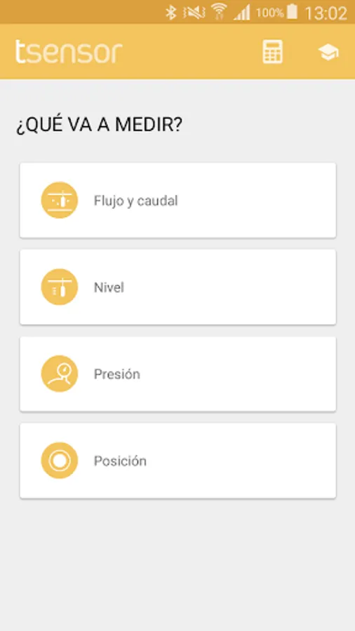 Ebb and flow, level, pressure and position with their respective submenus that lead us to sensor data sheet proposed
