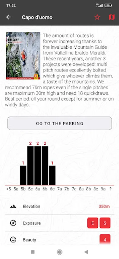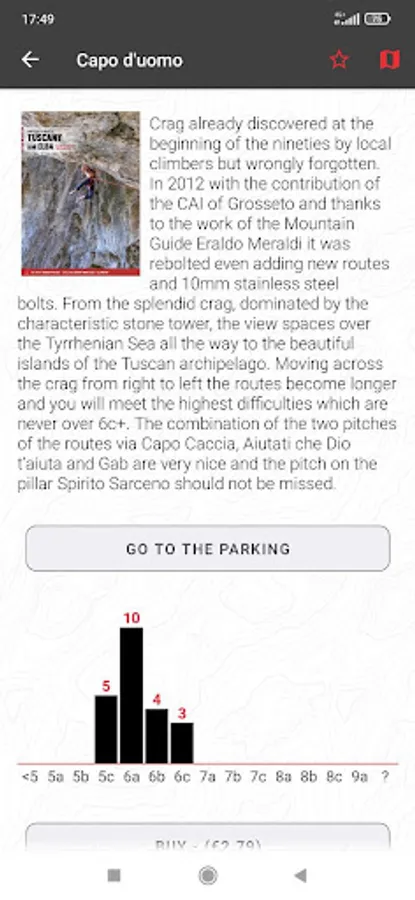 Every destination presents free basic information; to get the detailed information and topos you can purchase its extra content.