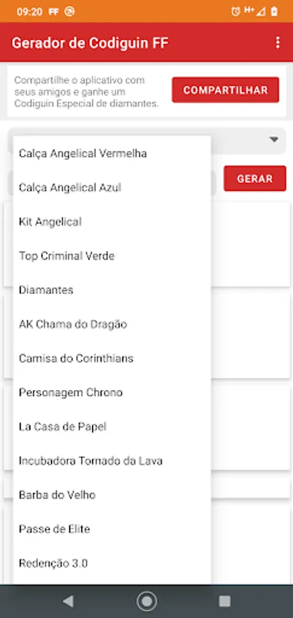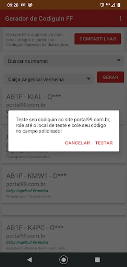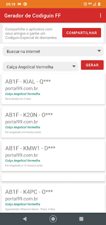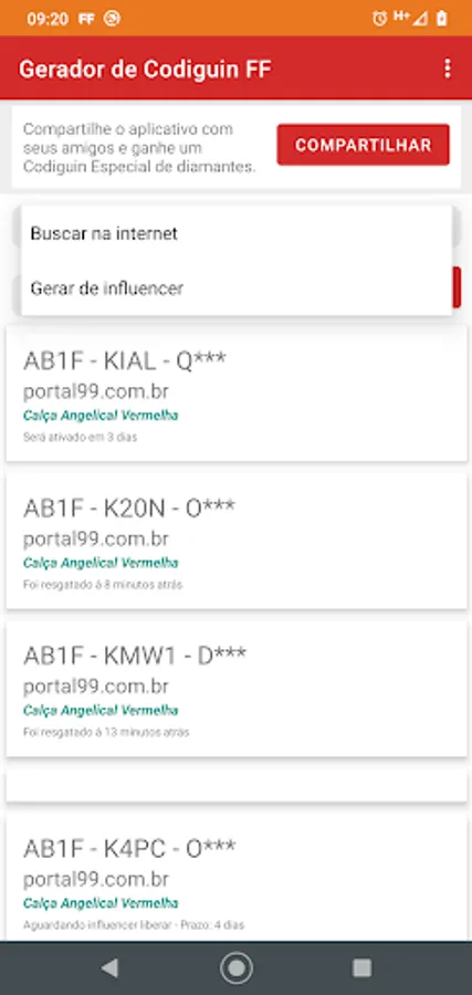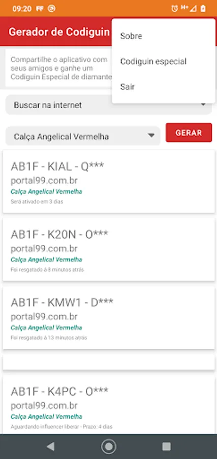 This tool is for you to generate codiguin. It's easy to generate the codes. Just select the code type and the app will create a bunch of combinations. You can select codes from the internet or influencers.