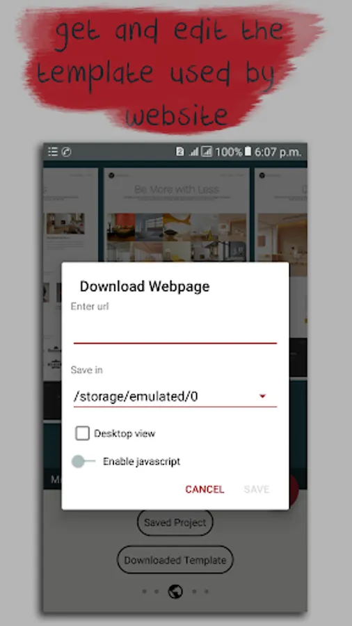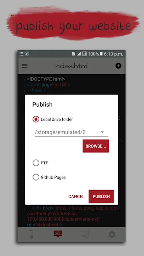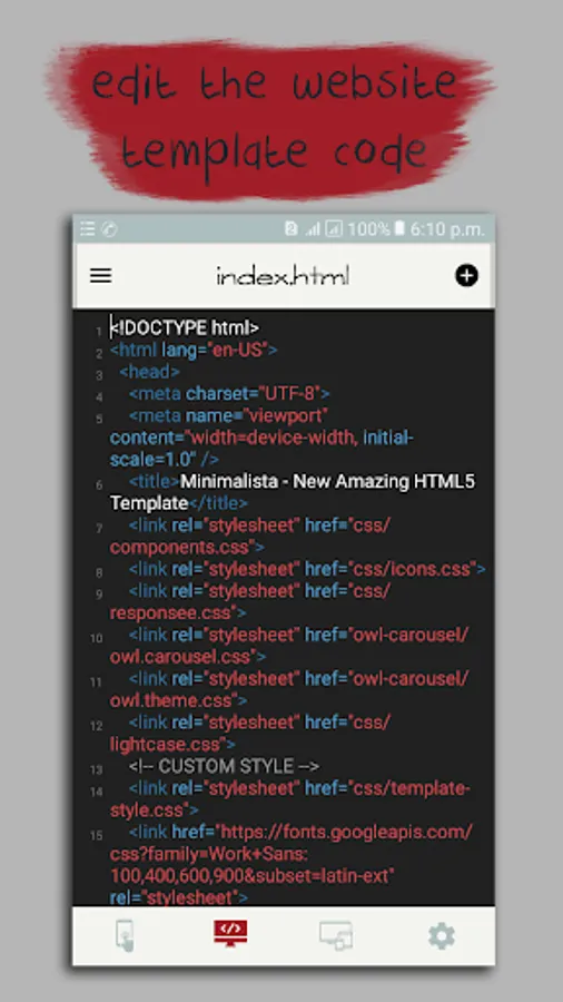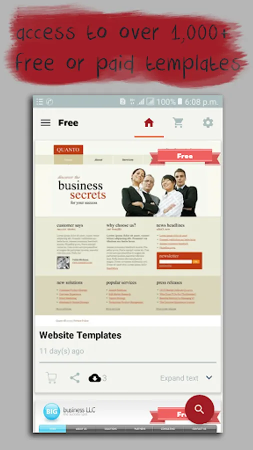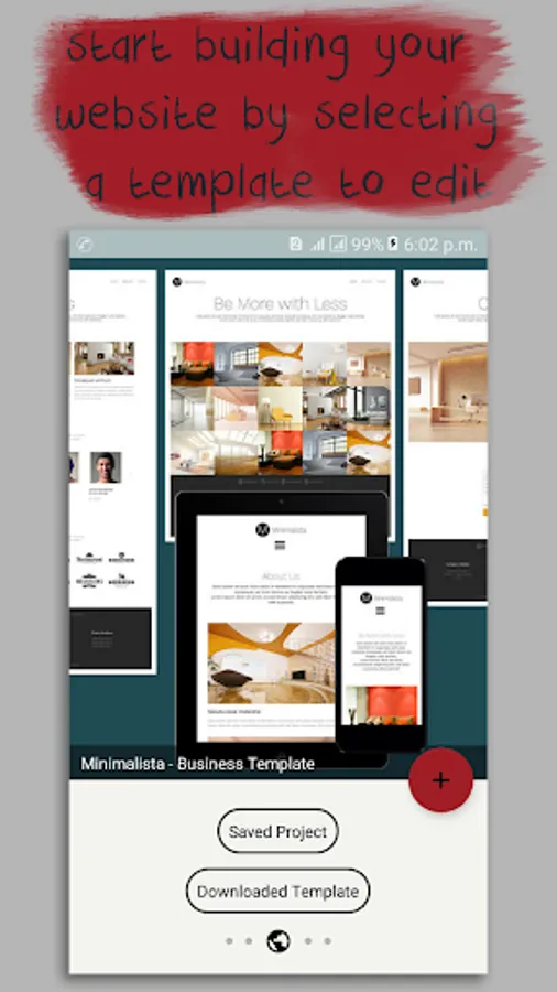 Create, maintain and publish your own professional website using in app templates, template from your favorite website or free/paid templates from stores