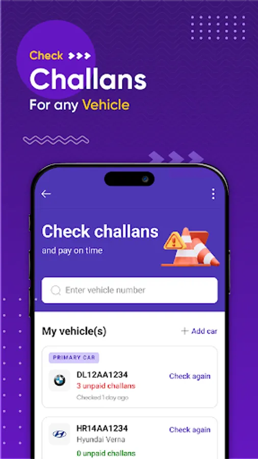 E-challan - Check your vehicle’s challan information.