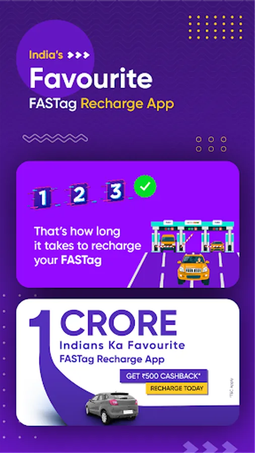 FASTag Recharge - Buy FASTag, recharge & view transaction history at one place.