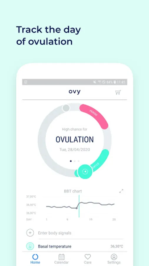 The Ovy App helps you to get pregnant. By adding data such as your basal body temperature (BBT) and other body signals the Ovy App calculates the day of ovulation, the fertile window and the next period. The more data you add, the more accurate your predictions will be. After you get pregnant you can switch into the pregnancy mode of the Ovy App. The Ovy Partner App which is also available on the App Stores enables your partner to keep track of your current cycle.