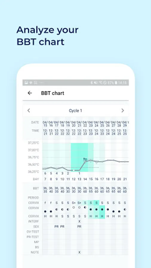+ Detailed temperature graph, cycle and calendar at a glance.