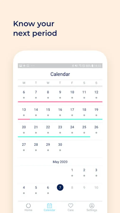 + Register and create your profile so that the Ovy App becomes familiar with your menstrual cycle.