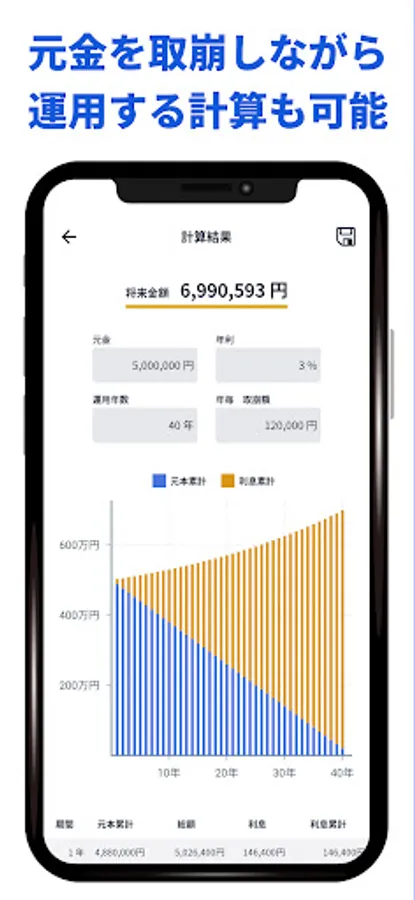 If you enter the withdrawal amount instead of the reserve amount, the future amount will be calculated if you invest while withdrawing the principal.