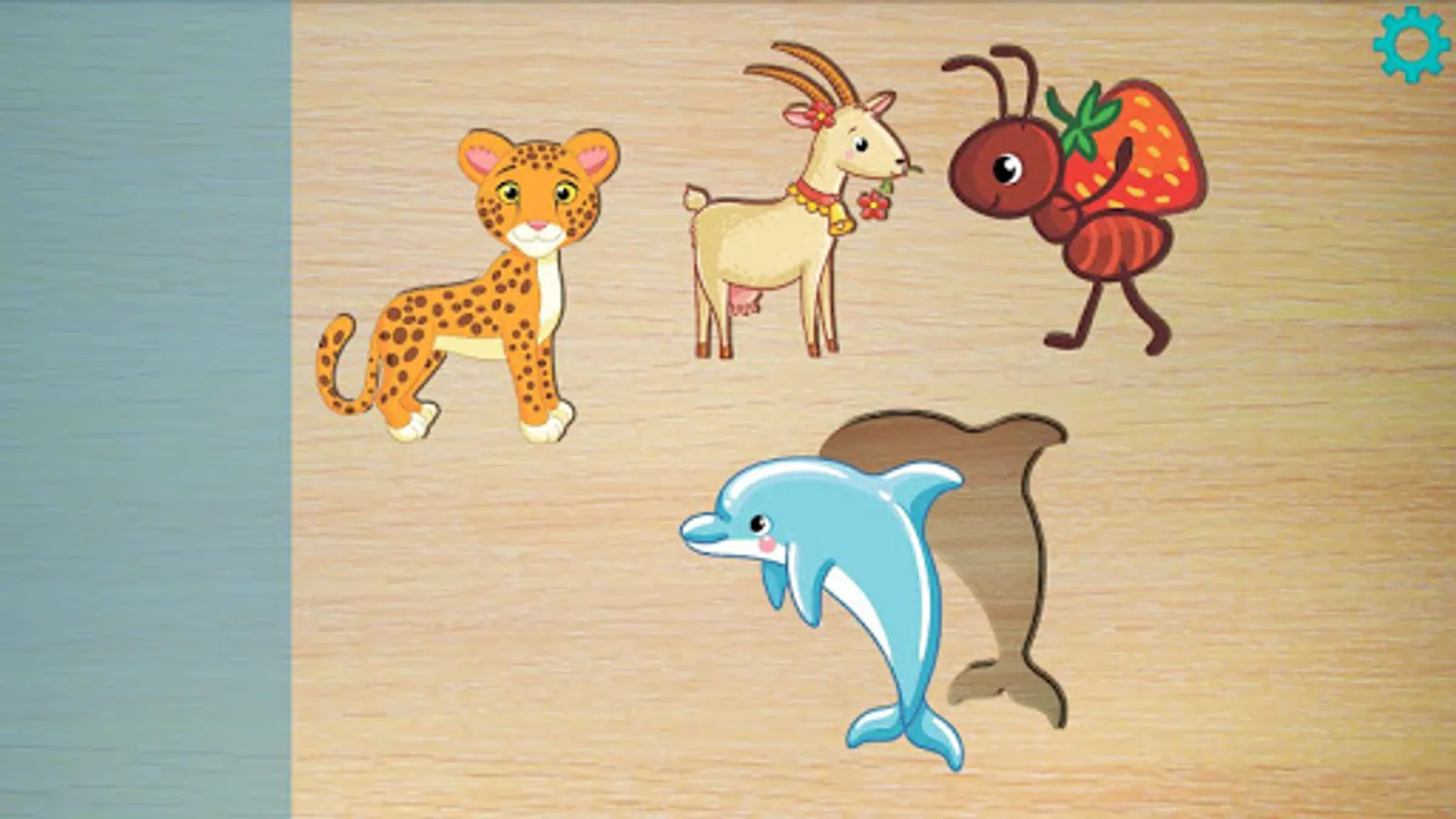 The goal of the game in the children's puzzle: put all the animals in the right places.