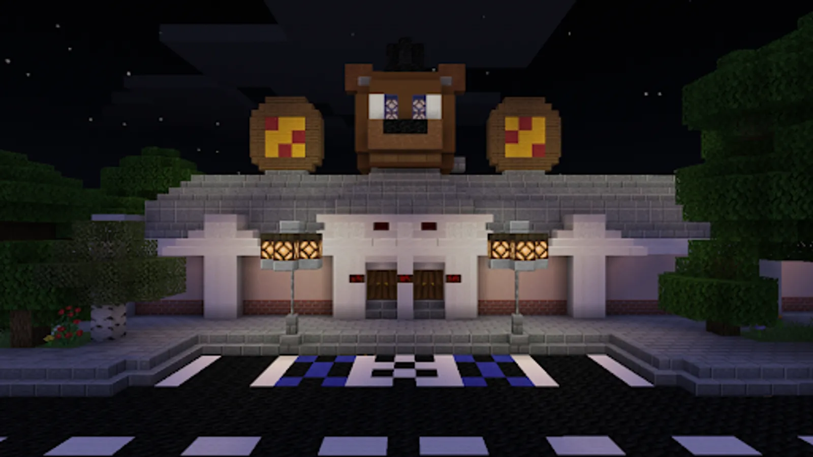 An almost accurate copy of the pizzeria that you could see in a variety of FNAF games.