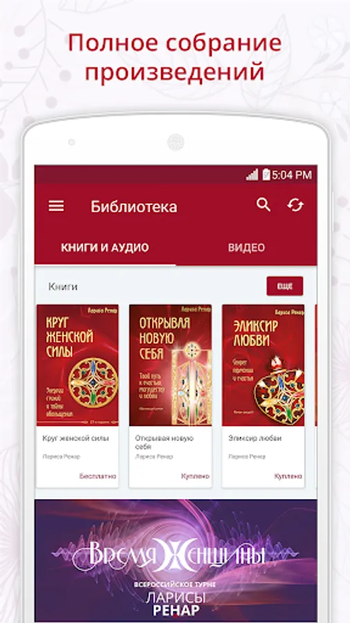 Important! Full versions of books in the application are paid. For the opportunity to familiarize yourself with books and audio books, there is an opportunity to start reading and start listening for free.